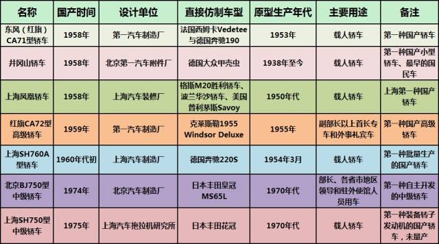 与苏联援助建立的卡车汽车生产体系不同,中国国产轿车走的路线相对独立——也就是说,能够独立仿制不同车型,而不是依赖苏联的指定款式。