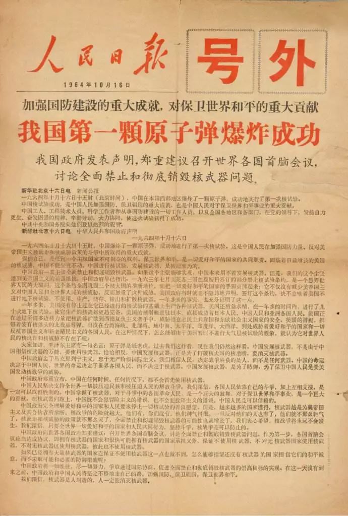 图:人民日报关于原子弹爆炸成功的“号外”