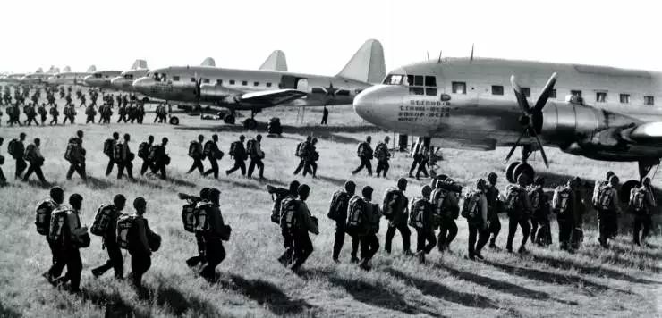 图:1969年,中国军队进入全面备战状态,图为空军某部进行快速登机训练
